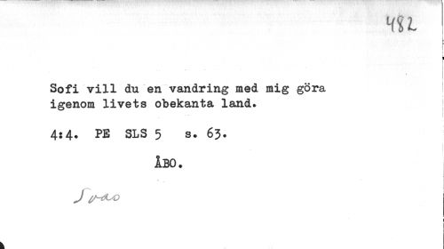 //// m //// i= r //// I //// i //// i i //// } //// ; //// Sofi vill du en vandring med mig göra //// : //// igenom livets obekanta land. j //// • —- i //// 4:4. PE SLS 5 s. 63. //// ÅBO. //// r. * //// J //// t ////