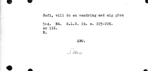 //// Sofi, vill du en vandring med mig göra //// 5:4. NA. S.L.S. 24» s. 225-226. nr 116. //// H. //// ABO. //// J M^o ////