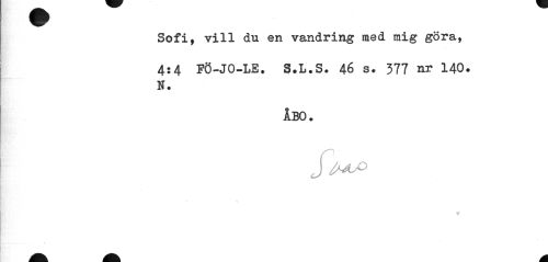 //// Sofi, vill du en vandring med mig göra, //// 4$4 FÖ-JO-LE. S.L.S. 46 s. 377 nr 140. N. //// ÅBO. //// 1 v ////