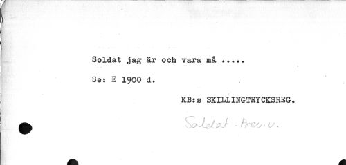 //// Hy' « //// Soldat jag är och vara må «••». //// v //// Ses E 1900 d. //// KBss SKILLINGTRYCKSEEG. //// C1 I 1 i //// ~ fp~ O' t/ • ////