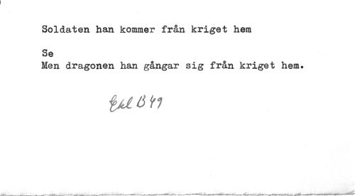 //// Soldaten han kommer från kriget hem,- //// Se //// Men dragonen han gångar sig från kriget hem. //// iuiå^ ////