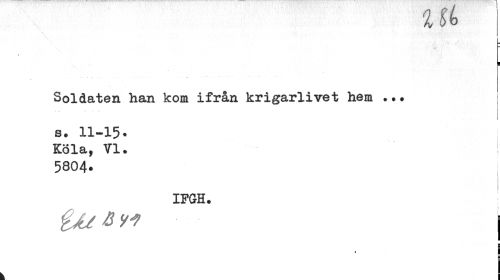 //// %bb //// % //// 1 //// Soldaten han kom ifrån krigarlivet hem ... //// s. 11-15. //// Köla, VI. //// 5804. //// IFGH. //// &U&M I //// i ¦ //// r ////