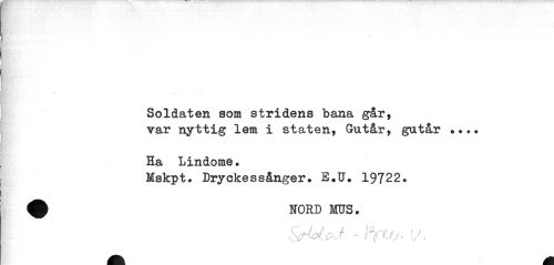 //// Me? //// ¦ //// Soldaten som stridens bana går, //// var nyttig lem i staten, Gutår, gutår ... //// Ha Lindome. //// Mskpt. Dryckessånger» E»U» 19722. //// ^ FORD MUS. //// / * ; //// ^ . / A />' ^ 4- ^ • J' /r ? / //// /X r ~ r t f j > / //// t/ V. f i - ' / * //// A Jl ////