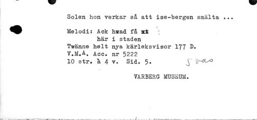 //// Solen hon verkar så att ise-hergen smälta ... //// Melodi: Ack hsrad få k± J. //// här i staden Twänne helt nya kärleksvisor 177 D. Y.M.Å. Acc. nr 5222 //// 10 str. a 4 v. Sid. 5* ^ //// VAHBERG MUSEUM. //// & . - —'————-.j-,—. --- ---... - - ^ -— .. . 1--- _ .--i---/T-*—*m—m—A--„--—--- ''---—---~—---***** —---—---—--- ////