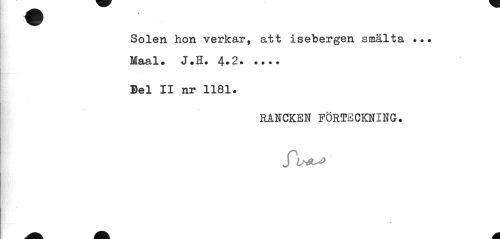 //// Solen hon verkar, att isebergen smälta ... Maal. J.H. 4*2... //// Del II nr 1181. //// RANCKEN FÖRTECKNING. //// A. ^ A ////