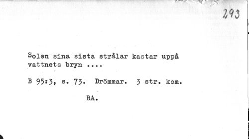 //// m //// m | //// Solen sina sista strålar kastar uppå vattnets bryn ... //// B 95*3* s. 73* Drömmar. 3 str. kom. //// rå. //// i //// " i //// i 1 //// i //// i ¦ //// i //// k = ////
