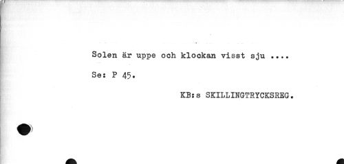 //// . . . ... . • . . . .. Solen är uppe och klockan visst sju //// Se: P 45• //// KB:s SKILLINGTEYGKSEEG« ////