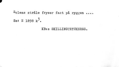 //// solens stråle fryser fast på ryggen ... Ses E 1898 k5. //// KB s s SKILLINGTRYCKSREG. ////