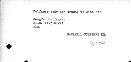 //// Solfager står och krusar ut sitt hår //// Jungfru Solfager. H.-C. II:3:E:2:A 210. //// H-CAVALL-STSPHENS KB. //// /-" 9&S ////
