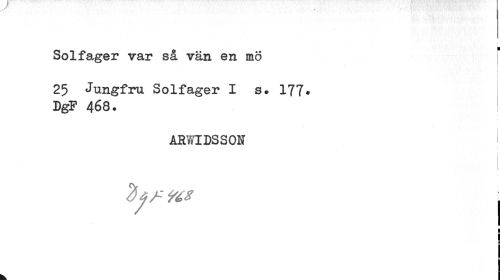 //// Solfager var så vän en mö 25 Jungfru Solfager I s. 177. //// DgP 468. //// ARWIDSSON //// 1 //// I //// i //// i ////