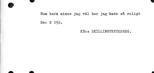 //// Som barn minns jag väl hur jag hade så roligt Ses G 292. //// KBss SKILLINGTRYCKSREG. //// » ////