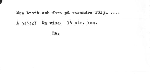 //// i //// i //// Som brott och fara på varandra följa ... //// A 345:27 En visa. 16 str. kom. i //// i //// RA. 1 //// I //// i ////