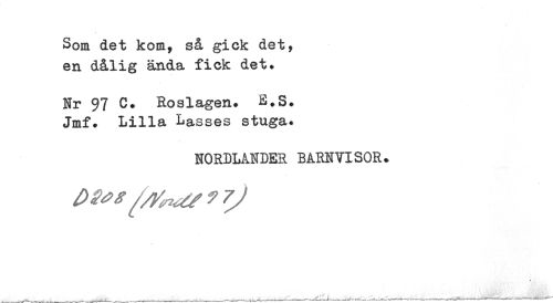 //// Som det kom, så gick det, en dålig ända fick det. //// Nr 97 C. Roslagen. E.S. Jmf. Lilla Lasses stuga. //// NORDLANDER BARNVISOR. //// i>9*** yj //// rfV*»-.»fr.^ t.^wfrfr-ft' ...¦r.nrf,,^ ni ,.I iLtiJj1!-^' rf.*..*. — rtH '„• r^il „„ n>ijjlll .Tn^-/^m» hl .»»rH rfÉlili^ ' ////
