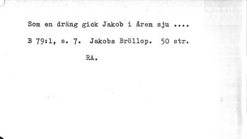 //// I //// I //// Som en dräng gick Jakob i åren sju ... B 79:1» s. 7. Jakobs Bröllop. 50 str. //// RÅ. ! ////