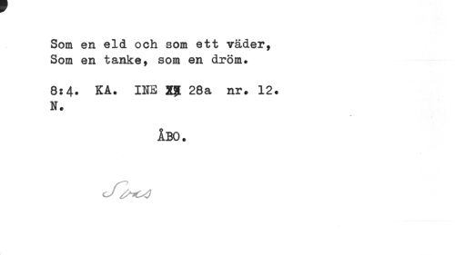 //// Som en eld och som ett väder, Som en tanke, som en dröm. //// 8:4- KA. IHE XH 28a nr. 12. N. //// ÅBO. //// J J^oö ////