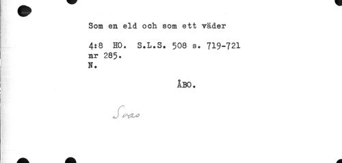 //// Som en eld och som ett väder //// 4:8 HO. S.L.S. 508 s. 719-721 nr 285. N. //// ÅBO. //// J ////