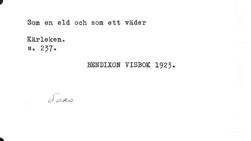 //// Som en eld och som ett väder //// Kärleken. B- 237. //// BENDIXON YISBOK 1923. //// c) //// k ////
