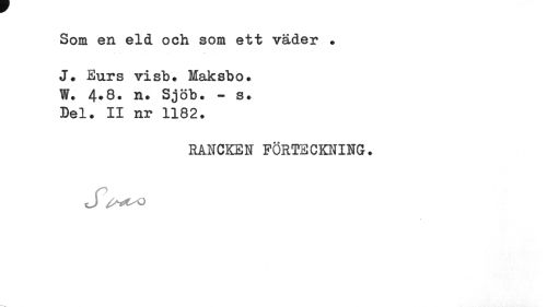 //// Som en eld och som ett väder . //// J. Eurs visb. Maksbo. W. 4.8. n. Sjöb. - s. //// Del. II nr 1182. //// 1ANCKEN FÖRTECKNING. ////