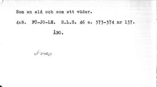 //// Som en eld och som ett väder. //// 4$8. FÖ-JO-LE. S.L.S. 46 s. 373-374 ar 137. //// ÅBO. //// i //// I j //// c/ //// i i //// i //// k ////