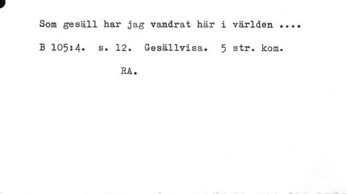 //// Som gesäll har jag vandrat här i världen ... B 105:4* s. 12. Gesällvisa. 5 str. kom. //// KA. ////