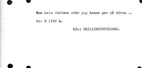 //// Bom hela världen står jag henne ger på båten .. Ses N 1786 b. //// KBss SKILLINGTRYCKSREG. ////