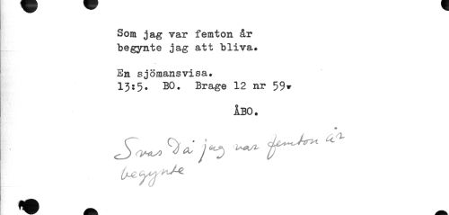 //// Som jag var femton år begynte jag att bliva. //// En sjömansvisa. //// 13:5. BO. Brage 12 nr 59» //// ÅBO* //// S»»** * fr ir*" * ////