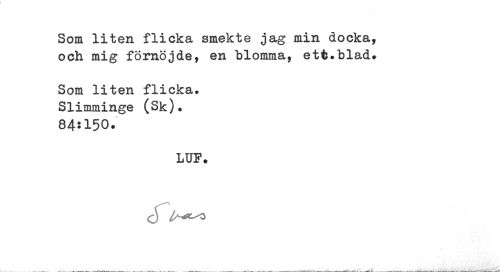 //// Som liten flicka smekte jag min docka, och mig förnöjde, en blomma, ett.blad# //// Som liten flicka» Slimminge (Sk)* 84:150. //// LUF. //// <3 ////