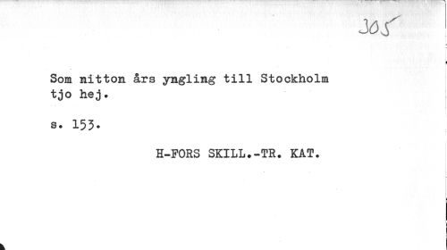 //// Jö/ //// i //// I //// Som nitton års yngling till Stockholm tjo hej. //// 8. 153- //// r i //// H-FORS SKILL.-TR. KAT. //// k ////