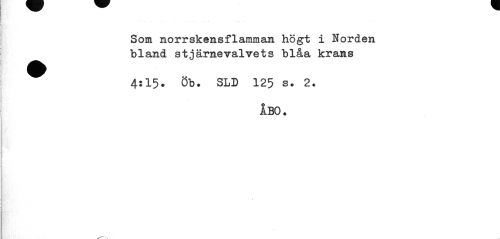 //// Som norrskensflamman högt i Norden bland stjärnevalvets blåa krans //// ^ 4:15. Öb. SLD 125 s. 2* //// ÅBO. ////