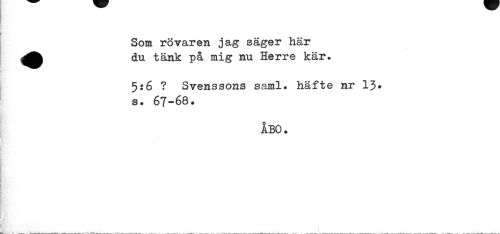 //// Som rövaren jag säger här du tänk på mig nu Herre kär. //// 5:6 ? Svenssons saml. häfte nr 13. s. 67-68. //// ÅBO. ////