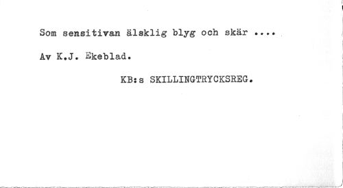 //// ¦ //// I //// Som sensitivan älsklig blyg och skär //// i //// Av K.J. Skeblad. //// f r //// KBss SKILLINGTRYCKSREG. //// i //// i //// I //// I //// i ¦ //// j //// l i //// i ////