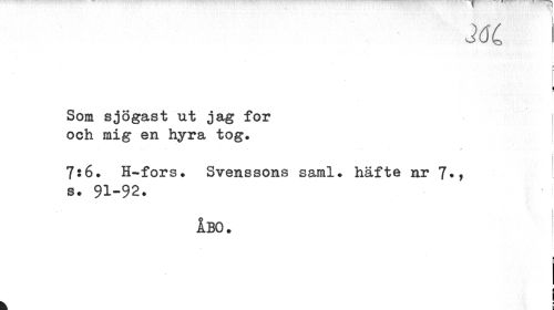 //// M //// Som sjögast ut jag for och mig en hyra tog. //// 7s6. H-fors. Svenssons saml. häfte nr 7«> //// s. 91-92. //// ÅBO. //// ¦ //// I //// i //// k i ////