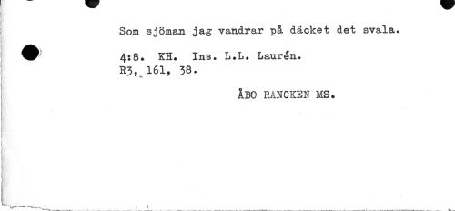 //// Som sjöman jag vandrar på däcket det svala. //// ^^ 4:8. KH. Ins. L.L. Laurén. //// R3, 161, 38. //// ÅBO RåNCKEN MS. ////