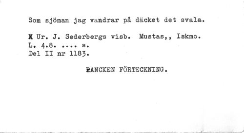 //// Som sjöman jag vandrar på däcket det svala. K Ur. J. Sederbergs visb. Mustas,, Iskmo. //// L. 4.8. ... s. //// Del II nr II83. //// 2ANCKEN FÖRTECKNING. //// ___ • _ ^ _ ___ ___.. ¦ ...^ _ . ___, .___ _ __ ^ ////