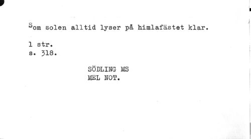 //// <1 //// t //// Q e ' //// Dom solen alltid lyser pa himlafästet klar» //// 1 str» s. 318. //// SÖDLING MS MEL NOT. //// i //// i l ////