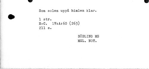 //// Som solen uppå himlen klar. ^^ 1 str. //// H-C. 1Y:Å:60 (263) //// 211 s. //// SÖDLING MS MEL. NOT. ////