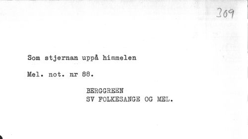 //// 2ö°! //// i i //// Som stjernan uppå himmelen Mel* not. nr 88. //// i //// BEBGGHEEN //// SV FOLKESANGE OG MEL. i //// k ////