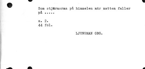 //// Som stjärnorna på himmelen när natten faller på... //// s. 2. //// 44 fol. //// LJUNGMAN GBG. ////