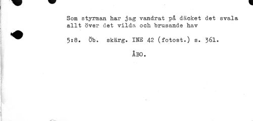 //// Som styrman har jag vandrat på däcket det svala allt över det vilda och brusande hav //// 5:8. Öb. skärg. IHE 42 (fotost.) s. 36I. //// ÅBO. ////