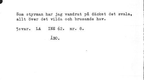 //// Som styrman har jag vandrat på däcket det svala, j allt Över det vilda och brusande hav. //// > //// 5:var. LA I NE 62. nr. 8. j //// . | ABO. | //// fr //// \ //// i i //// i ¦ //// i i ////