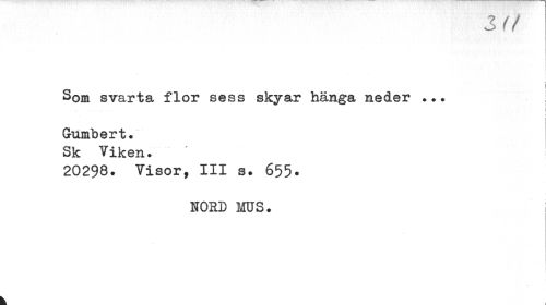 //// ut //// 'l //// Som svarta flor sess skyar hänga neder ... //// i //// (Jumbert. Sk Viken. //// 20298. Visor, III s. 655. //// NORD MUS. //// k ////