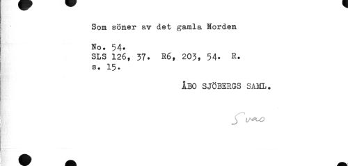 //// Som söner av det gamla Horden //// No. 54. //// SLS 126, 37. R6, 203, 54. B. //// s. 15. //// ÅBO SJÖBBBGS SAML. ////