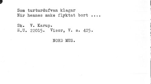 //// Som turturdufvan klagar När hennes make flyktat bort //// Sk. V. Karup. I //// E.U. 22015» Visor, T. s. 425- j //// i //// - //// HORD MUS. //// i //// I //// = //// ¦ //// f //// \ > //// i ////