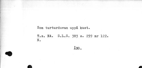 //// * //// Som turturduvan uppå kust. //// T.s. NA. S.L.S. 383 s. 299 nr 122. N. //// ÅBO. ////