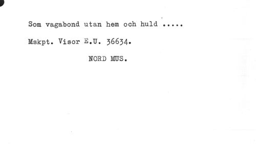 //// # //// Som vagabond utan hem och huld ... //// Mskpt. Visor E.U. 36634. //// NORD MS. ////