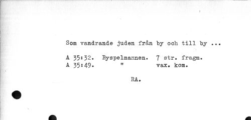 //// If //// Som vandrande juden från by och till by //// « //// A 355 32. Byspelmannen. 7 str. fragm. A 35:49. " vax. kom. //// RA. //// \ ////
