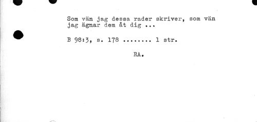 //// Som vän jag dessa rader skriver, som vän jag ägnar dem åt dig //// ^ B 98:3, s. 178 ... 1 str* //// RÅ. //// X //// k ////