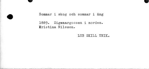 //// ^^ Sommar i skog och sommar i äng //// 1889* Zigenargossen i norden. Kristina Nilsson. //// LUB SKILL UNIK. ////