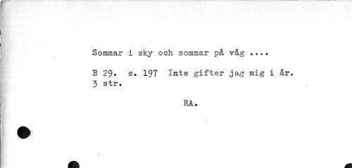 //// Ill //// Sommar i sky och sommar på våg ... //// B 29» s. 197 Inte gifter jag mig i år. 3 str. //// RA. //// * ////