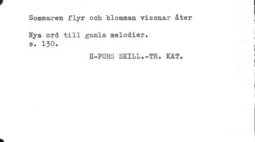 //// Sommaren flyr och blomman vissnar åter ; //// h //// s //// I //// Nya ord till gamla melodier. ! //// s. 130. //// i //// H-FORS SKILL.-TR. KAT. //// ! //// i //// k //// k ////